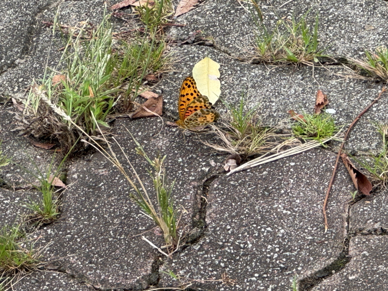 네발나비역시 환삼덩굴을 갉아 먹으면서 뾰족한 돌기를 키우면서 작은 사자처럼 왕성한 식욕을 자랑했습니다. 이제 나비가 되어 공원에 떨어진 감에 붙어 양분을 흡입하기도 합니다.