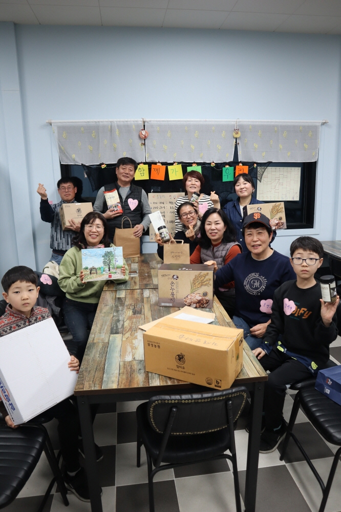 저녁을 먹고, 사다리타기로 경품을 나누었습니다. 단체 사진도 남겼습니다.