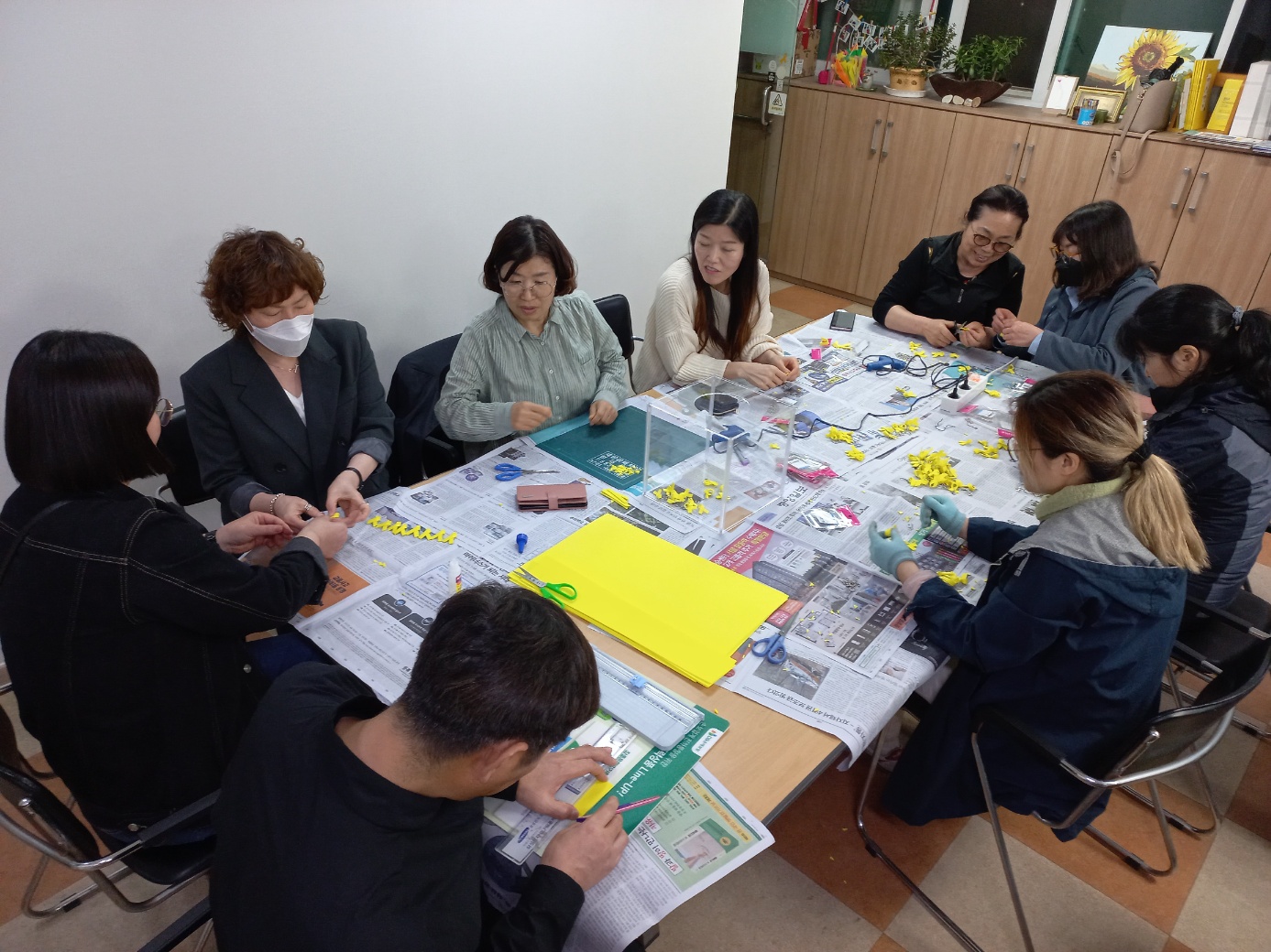 2023.4.14 금요일 저녁 7시 - 8시 사무실에서 노란 리본 만들기