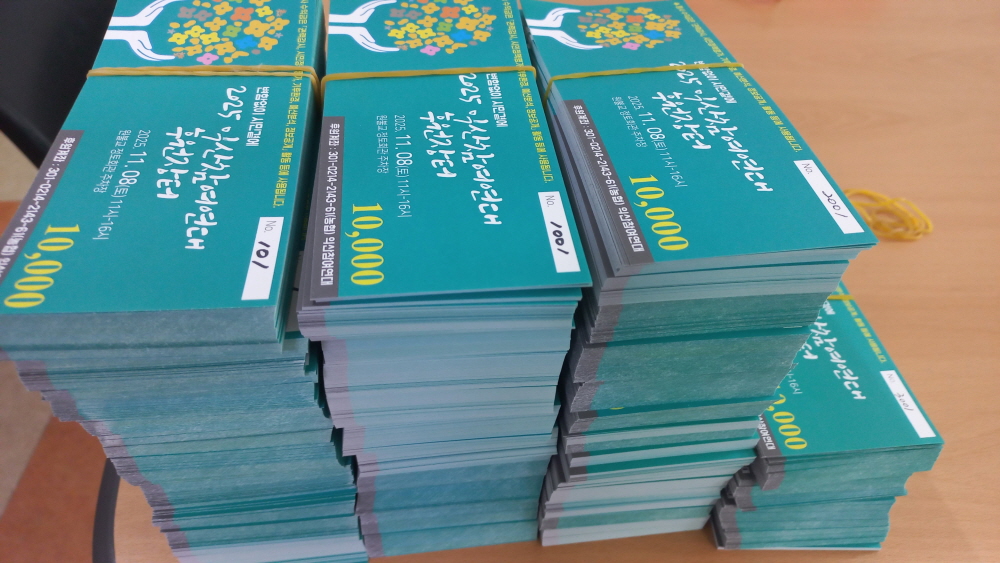 ○ 2025년 후원장터 첫 준비는 티켓 제작, 번호 넘버링, 배포로 이어집니다.