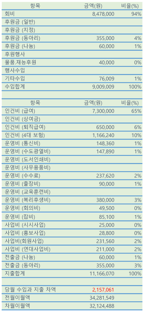익산참여연대 2023년 8월 살림살이