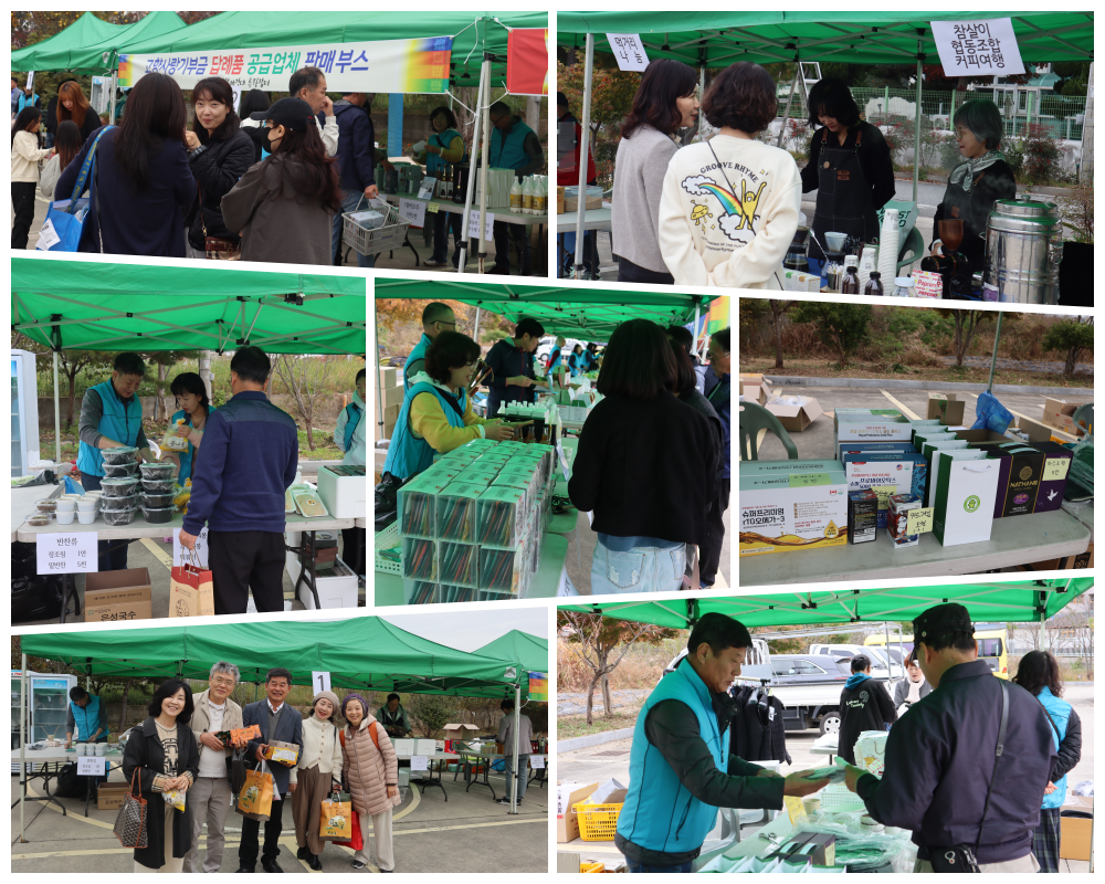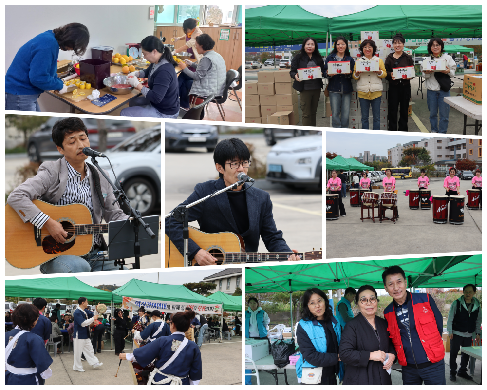 이번 장터는 먹거리 나눔 부스(어묵, 전, 커피)와 공연 마당이 장터를 빛나게 해주었다. 공연에는 아울뜰 고고장구팀의 신나는 고고장구, 풍물반의 설장구 공연과 길놀이, 이대규, 황현수 회원의 노래는 가을날의 힐링의 시간이 되었다.