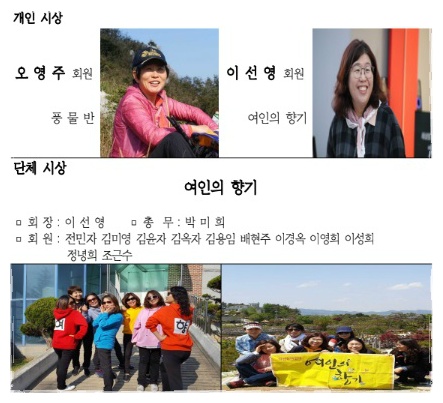 2019년 익산참여연대를 위해 수고해주신 회원상으로 오영주, 이선영 회원님이 수상하였고 단체는 여인의 향기가 수상하였습니다. 수고해주신 회원님과 동아리에 감사하고 축하드립니다.