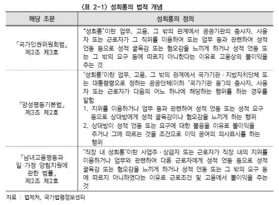 #법적 개념에서 공통으로 명시하고 있는 성희롱의 전제조건