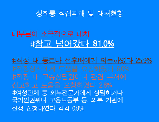 성희롱 직접 피해자들 대부분 참고 넘어갔다!