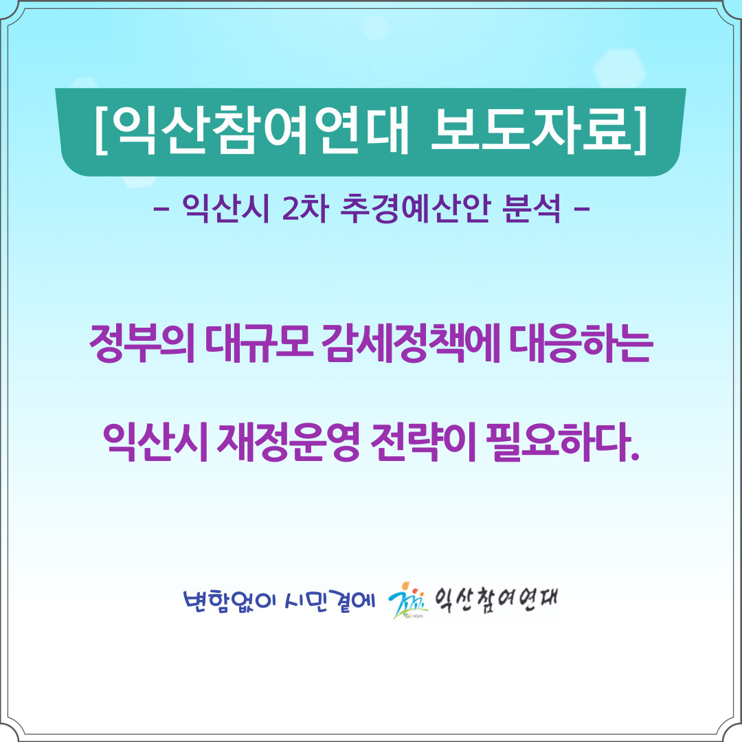 정부의 대규모 감세정책에 대응하는 익산시 재정운영 전략 필요