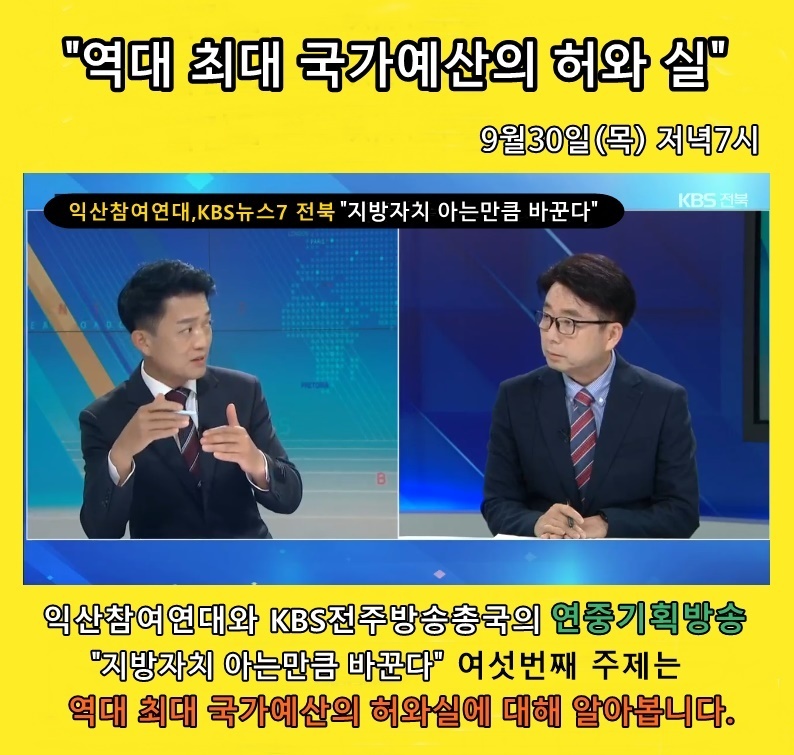 ‘지방자치 아는만큼 바꾼다’ 사업은 익산참여연대와 KBS가 함께 지방자치 30년을 맞는 전북 지자체의 살림살이 면면을 살펴보고 있습니다. 이 사업은 3월부터 12월까지 진행하는 연중기획 사업으로 매월 마지막 주 목요일 KBS 뉴스 전북7 생방송에 출연하여 대담방식으로 진행됩니다.