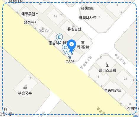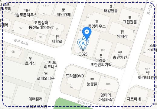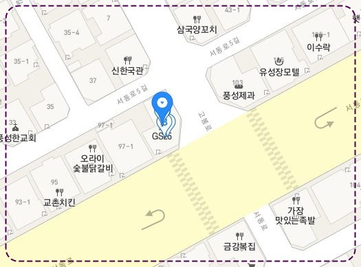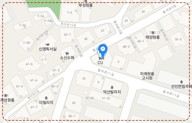 8. 마동 - 지에스25 마동점(서동로99) 다사랑치킨 동산점 방향 한국관 자리